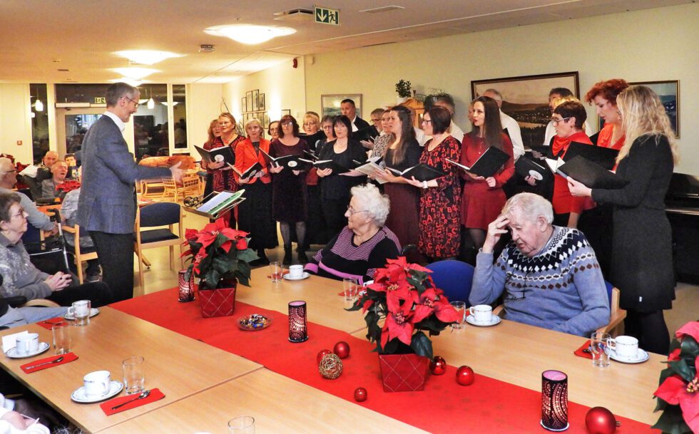 Hyggekveld: Onsdag 10. desember sørget sangere fra HeKS og Hemnes Mannskor for god julestemningen og servering på Hemnes omsorgssenter. FOTO: Tore M. Furuhatt