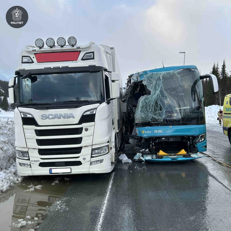Nødetatene rykket onsdag morgen ut til en trafikkulykke mellom en buss og et vogntog på E6 ved Storforshei.