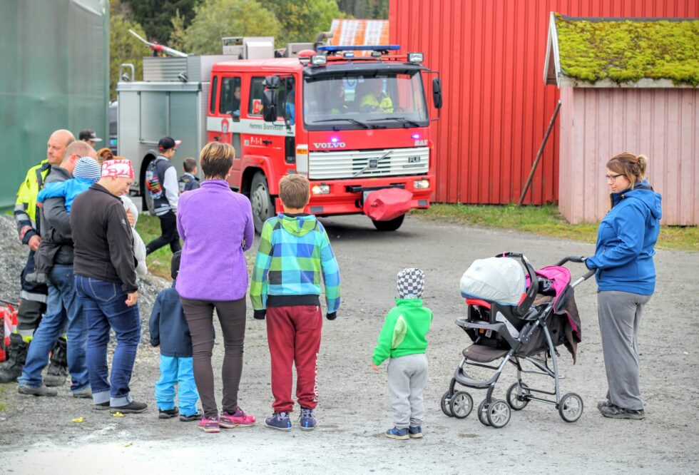 Arkivbilde av innbyggere i Hemnes på besøk under en åpen dag hos brannvesenet i Korgen. Kommunestyret vil fortsatt ha lokal brannordning, men samarbeide mer med andre. FOTO: Chris Erik Haugli